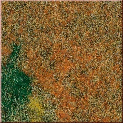 Plocha s vločkovou úpravou o velikosti 0,16 m 2 . Krátká stálobarevná vlákna ze syntetického materiálu. Natřete vodou ředitelným lepidlem. Materiál tak změkne a snadno se přizpůsobí tvaru terénu. Koberec nestříhejte, ale trhejte - působí to realističtěji.