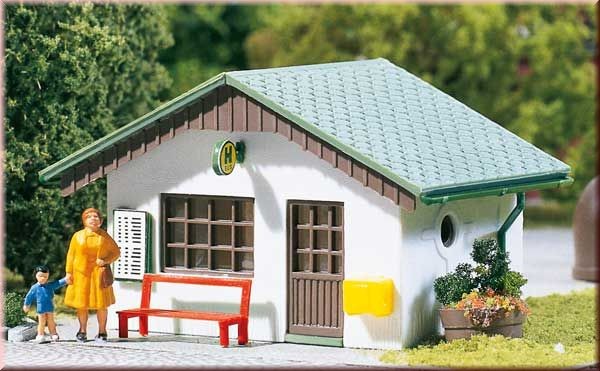 Tyto pěkné zastávky, jejichž vzhled je přizpůsoben okolní přírodě, stojí na autobusové trase Drážďany -Annaberg. Model podle skutečnosti.