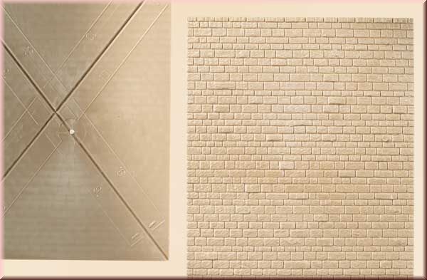 S výraznou strukturou, na zadní straně naznačené linie lomu k upravení výšky. K vytvoření opěrných zdí v hornatých terénech, bočních křídel mostů, tunelů atd.