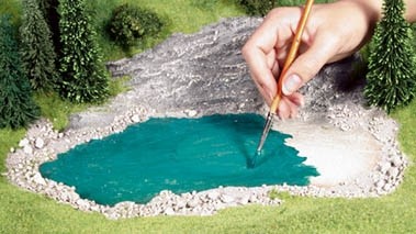 Nakonec nalejete již smíchaný dvousložkový vodní gel (NO60870) který vám vytvoří realistickou vodní plochu.