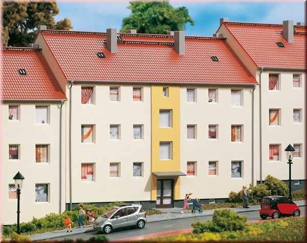 Obytné prostory patřily na konci 50-tých let stále ještě k nedostatkovému zboží. Proto vyrůstaly ve městech i na venkově tyto či obdobné bytové domy. Stavebnice obsahuje díly k různým obměnám vzhledu vašeho modelu - s balkonem a vstupem do sklepa, pouze s balkonem nebo jen vstupem do sklepa nebo také bez doplňků. Fantazii se při budování tohoto sídliště meze nekladou.