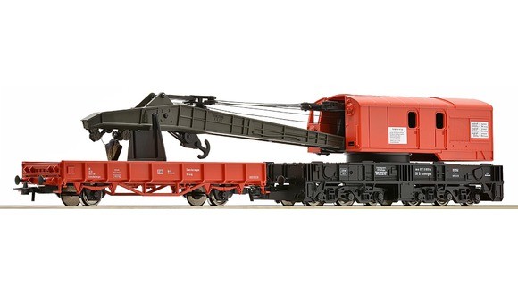 HO jeřáb + nízkostěnný vůz DBAG, Roco 56240