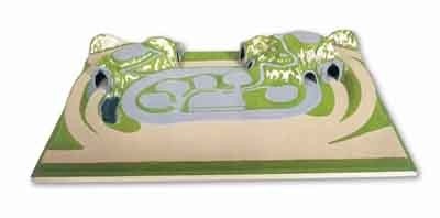 Hotový výlisek krajinky "Steigerwald"která je připravená na trať vedoucí dvěma tunely , maloměstečkem a přes dlouhý most,kolem jezera a s možností přidat krásnou silnici pro auta.Jezero způsobilé na vodu.Krajinka je zatravněná a ručně malovaná,která je v základním dřevěném rámu.Součástí krajinky jsou vestavěné tunely s malovanými portály a plány instalace kolejí pro systém