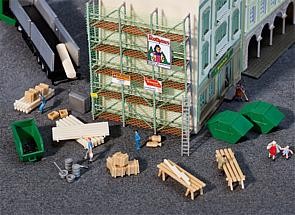 Lešení + stavební materiál.