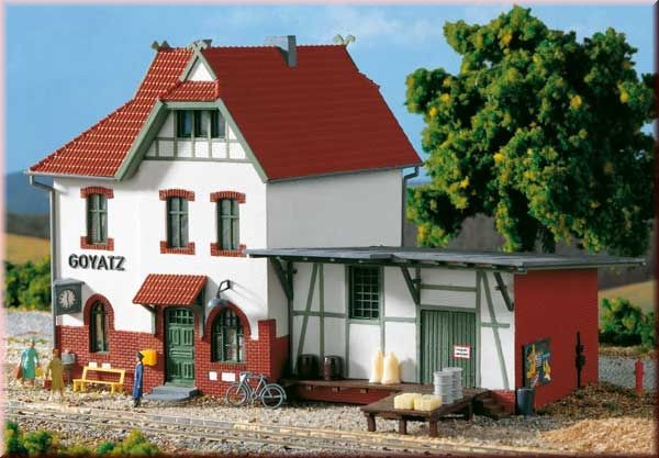 Věrná kopie nádražní haly na vedlejší trati. Mezi lety 1898 a 1904 vznikla železniční síť trati "Spreewaldbahn" o metrovém rozchodu. Dráha zvaná "Bähnle" se stala symbolem technického pokroku. Brzy se však dostávala stále více do popředí individuální mobilita. V roce 1970 byl zastaven provoz i na posledním úseku trati. Těm, kteří se chtějí dozvědět víc, doporučujeme knihu s názvem "Die Spreewaldbahn" (nakladatelství Transpress-Verlag). Model podle skutečnosti.