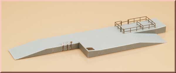 Stavebnice s možností širokého využití. Pro nakládku zboží všeho druhu. K nakládání dobytka patří ohrada z ocelových trubek a hydrant na vodovodní přípojku určenou k čištění stání pro dobytek.