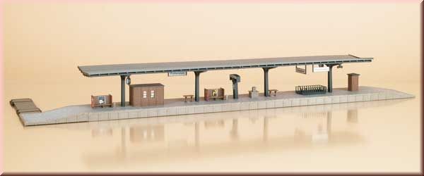 Se střechou z dehtové lepenky, konstrukcí z ocelových nosníků a podchodem. Přiloženy jsou stoly na odkládání zavazadel, lavičky s reklamními plochami, odpadkové koše, ukazatele s označením nástupiště a směrové ukazatele, tlampače, hodiny a informační tabule. Telefonní budka a čekárna, studna a přechody přes 2 koleje doplňují bohaté příslušenství.