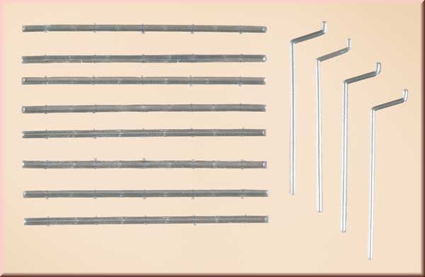 40 okapových žlabů o délce vždy 75 mm, 20 svodů o délce vždy 50 mm
