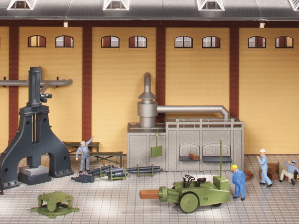 S velkým a malým bucharem, žíhací pecí, manipulátorem, otočným stolem, kovářskými kleštěmi  se stojanem, vždy se 6 malými a velkými neobroubenými kusy i 6 krátkými a dlouhými hotovými díly, vždy se 3 otevřenými a uzavřenými přepravními rámy, 4 odkládacími konzolemi a 2 dílenskými  stoly. Také je přiloženo potrubí pro kotle parní akumulátoru, vně namontované.
