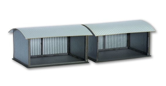 Sada stavebnice 2 ks plechových přístřešků 6,3 x 5 x 3,2  cm.