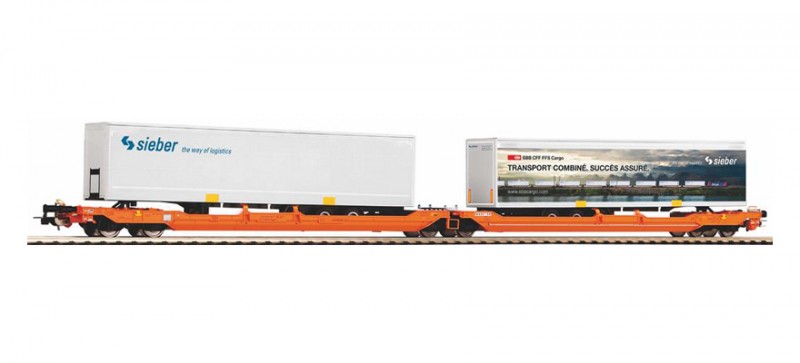 plošinový vůz T3000e Wascosa ložený kontejnery Sieber