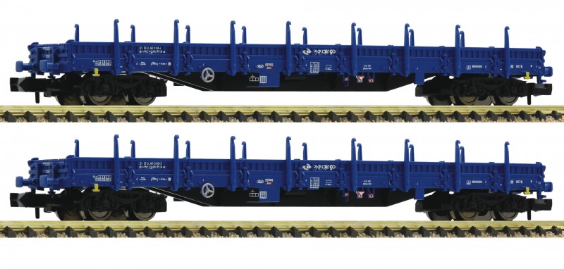 set 2 vozů modrých plošinových vozů PKP
