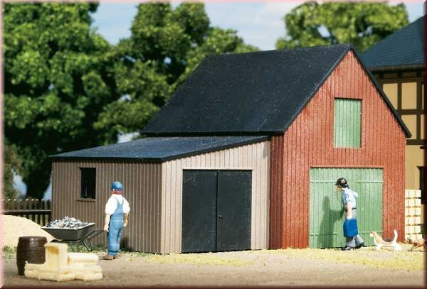Jako vedlejší budovu lze podobný sklad nalézt na všech pozemcích. Tuto stavbu je možné použít i samostatně. Zvláštní úprava umělé hmoty dodává modelu vzhled poznamenaný zubem času.