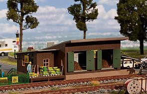 Sklad hnoje a rašeliny. V dřevěné konstrukce s pohyblivými branami a kamenné základy. Ideální také na místo stavebních pozemků.