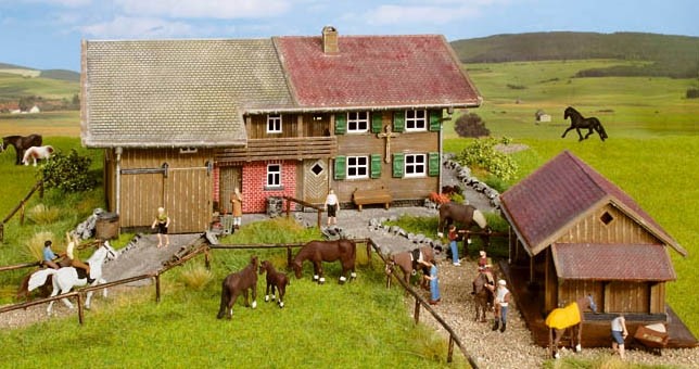 Statek a chlév jsou na podložce z tuhé pěny NOCH.