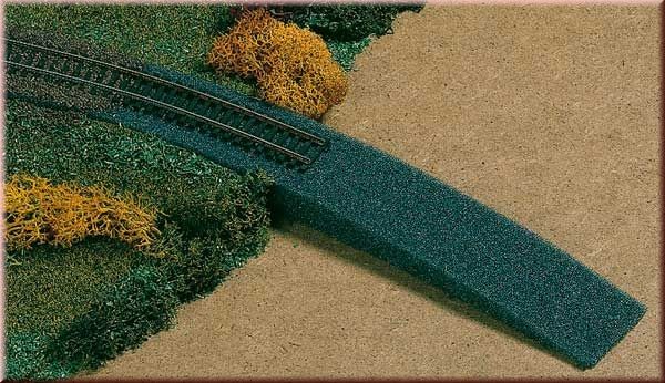 Ohebná, lehká hmota, lze z ní vytvarovat všechny obloukové úseky kolejí, tlumí hluk při jízdě.