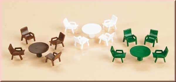 6 stolů a 18 židlí od každé barvy. K umístění na verandu, balkon či terasu.
